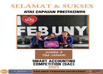 Post date: 31/10/2025 - 14:30Sleman,11 Oktober 2025 - Prestasi membanggakan kembali diraih oleh mahasiswa Program Studi D4 Akuntansi, angkatan 2024 kampus Wates, Fakultas Vokasi, Universitas Negeri Yogyakarta (UNY) melalui Tim Feactory yang beranggotakan Fifi Yuli Ana, Erika Septia Saharani, dan...